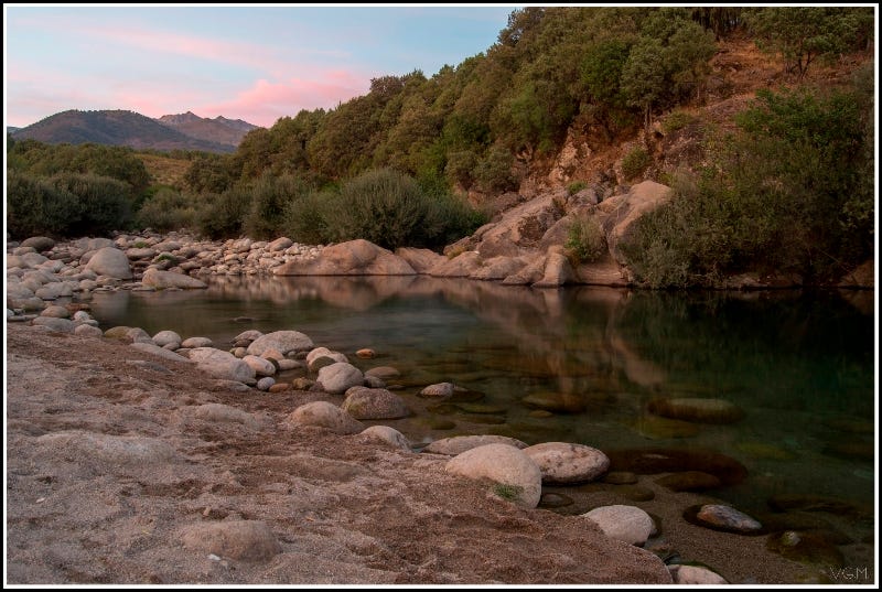 The roar of the river became a gentle babble as the quantity of water running off Almanzor slowly decreased. Every day the dogs and I would go to the river bank to collect water for washing and find that we had to pick our way over newly stranded granite boulders as the bank became a wider beach of white coarse granite sand and the flowing water slowly decreased.